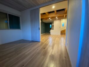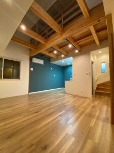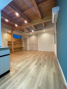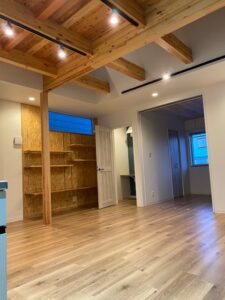 2階建ての戸建賃貸だからできる無垢のあらわし。 多様性のある1F GARAGE SPACEは車好きだけでなく趣味やトレーニングルームなど使い勝手抜群です。 小屋裏部屋→吹き抜け→ルーフデッキ(10畳)の開放的な空間。 シンプル×無垢材だからこそ、何年たってもその時の良さが味わえるやさしいお家です。