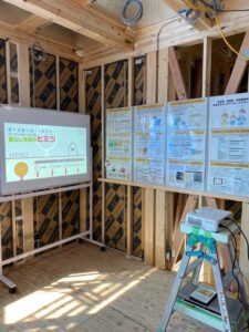 今回の体験会では前日の気密検査にて、C値0.27と測定されたOGIKEN自慢の高気密・高断熱の家を体感していただきました