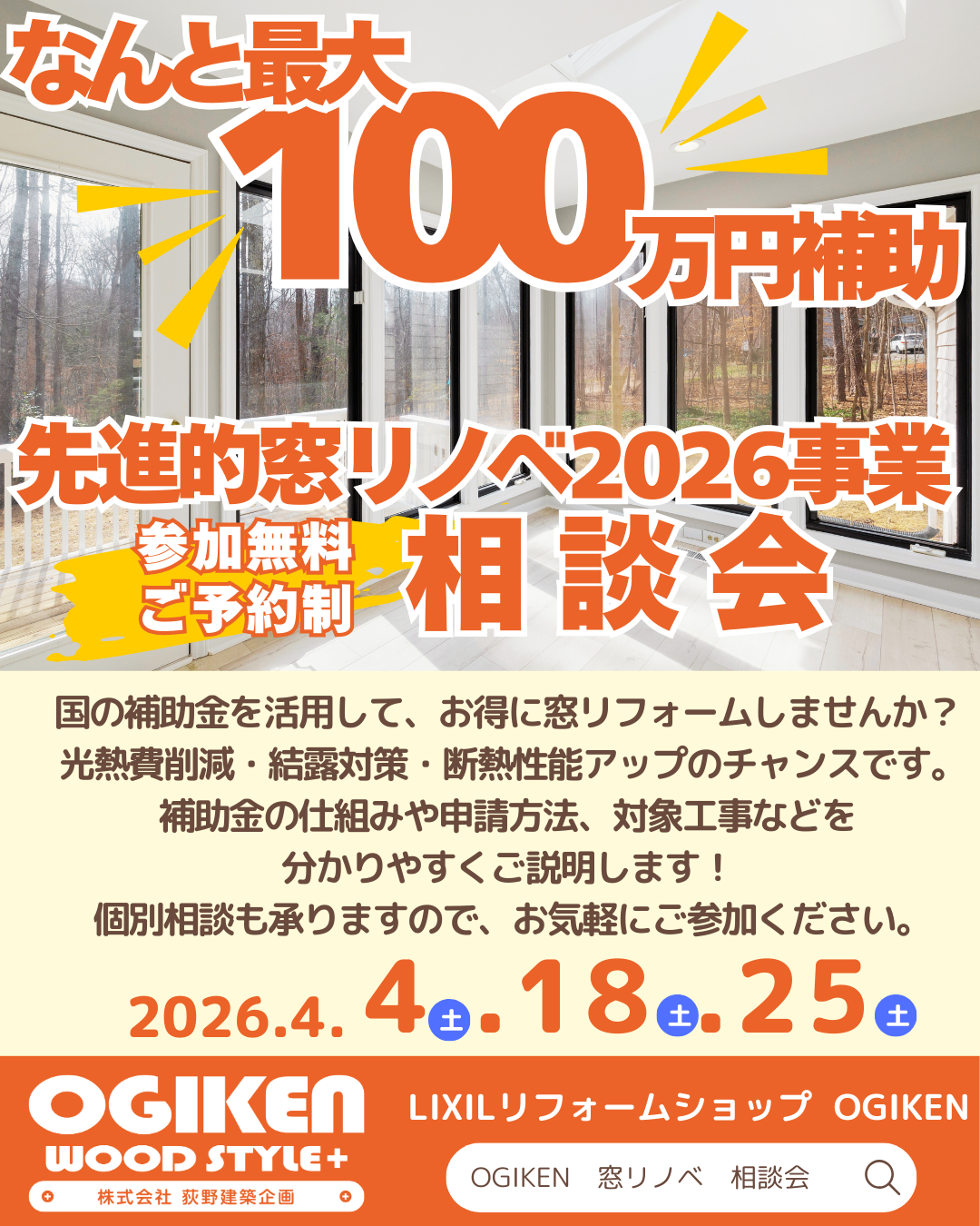【4月も開催】先進的窓リノベ2026事業相談会のお知らせ