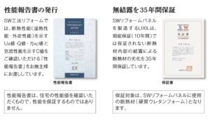 スーパーウォール工法リフォームは、SWリフォームパネル+現場施工断熱システム+高断熱サッシ・ドア+計画換気に加え、専門家による既存の建物診断、断熱リフォーム後の気密測定の実施、性能報告書の発行などにより、新築の高性能住宅レベルの断熱リフォームを実現しました。